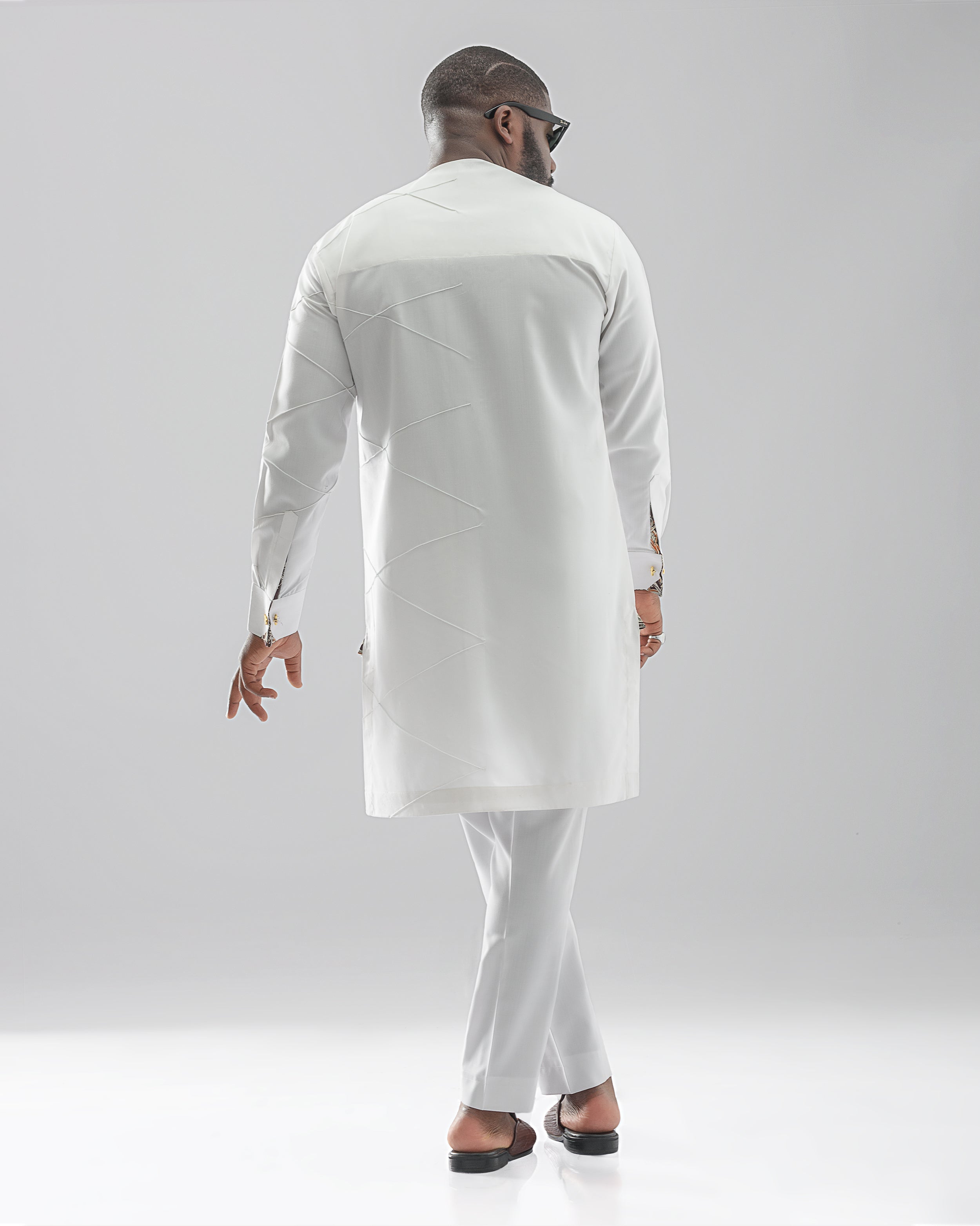 Tailored with white cashmere wool this kaftan is an expression of the ultimate PDJ man filled with charisma and a very clean aesthetic.Â