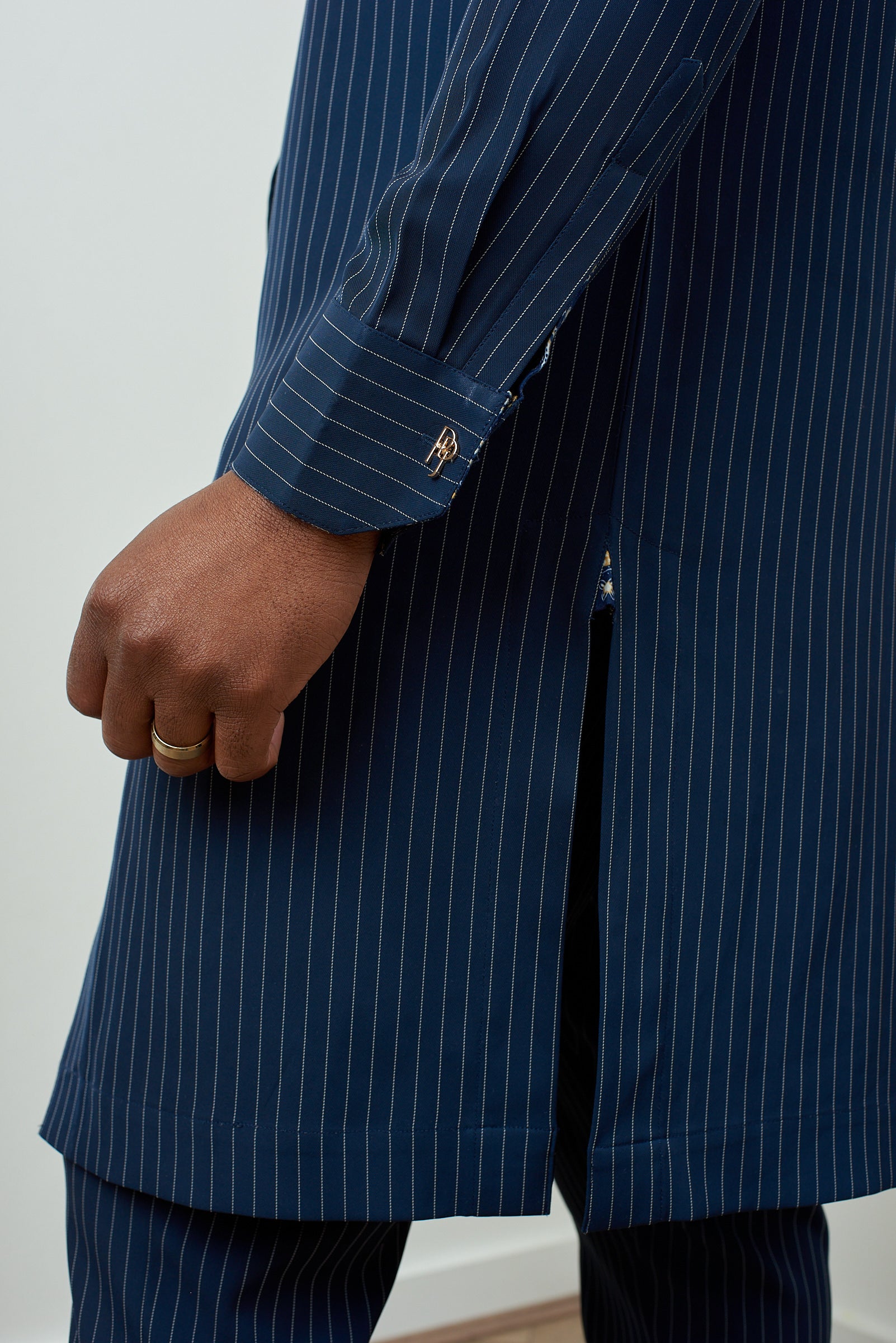 Tailored from fine navy blue pinstripe cashmere, the LOTHBROK