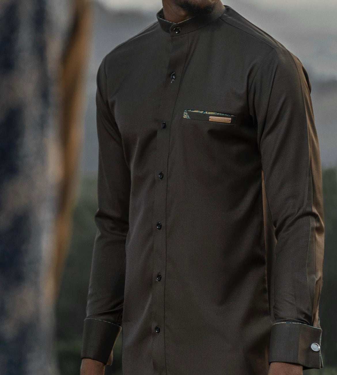 Tailored with army green soft wool and mohair this kaftan is an expression of the harmattan kaftan style with a slim fit and a very clean aesthetic.Â